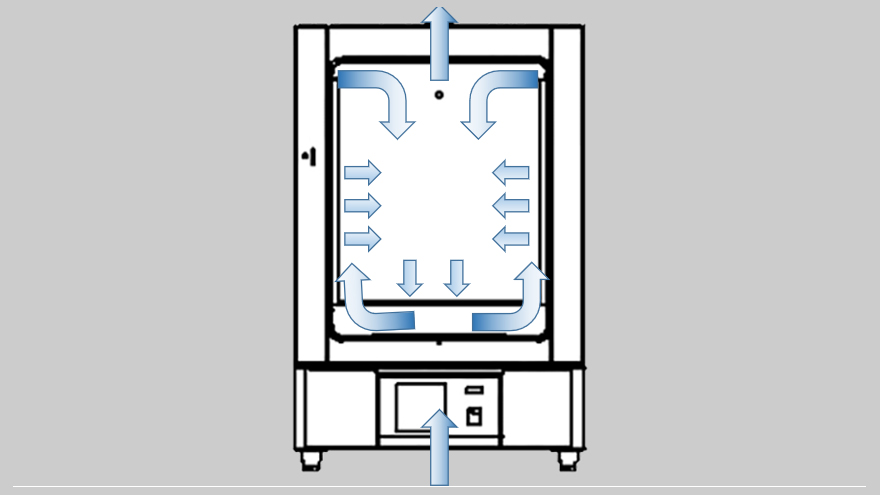 立式雙風(fēng)道氣套,渦輪離心強(qiáng)制送風(fēng), 溫度更均勻。